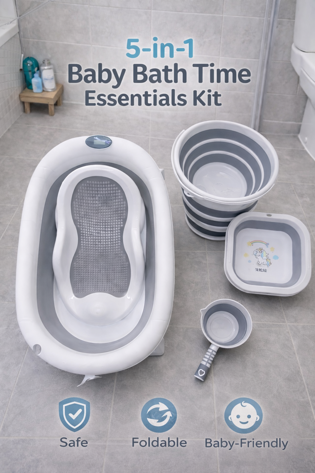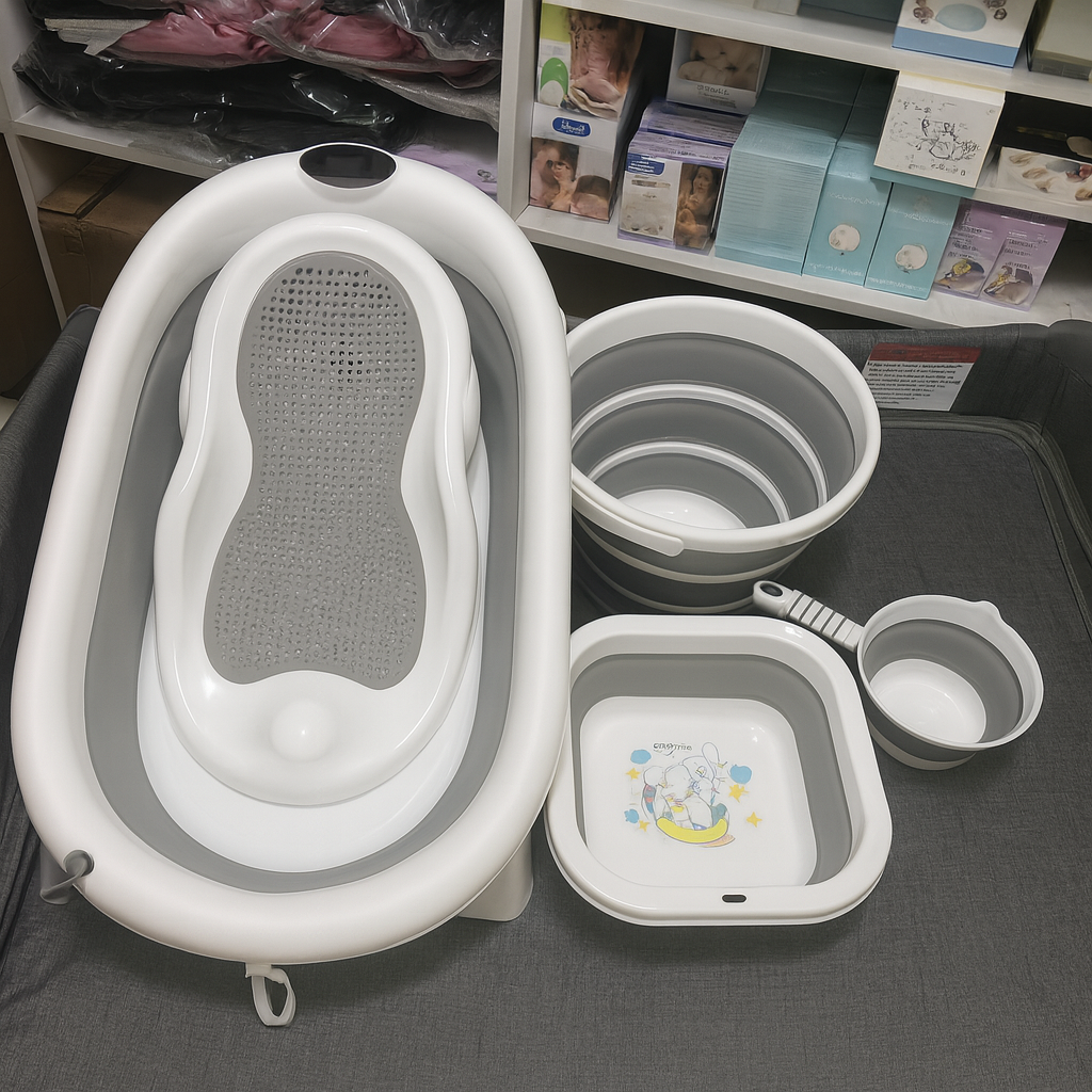 Bath time should feel calm, safe, and stress-free — for both baby and parent. This complete foldable baby bath set is thoughtfully designed to support you through every stage of your baby’s bathing routine, from newborn days to active toddler baths.