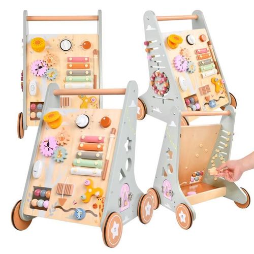 This Montessori-inspired wooden baby walker is thoughtfully designed to support your little one’s first steps while encouraging creativity and learning through play. Made from durable, eco-friendly wood, it offers a sturdy yet lightweight frame that ensures safety and balance for early walkers. The multi-functional design includes engaging activity panels that help develop fine motor skills, hand-eye coordination, and early problem-solving. Its foldable structure makes it easy to store and move, perfect for both home and travel use. A beautiful blend of play, learning, and development — all in one walker!